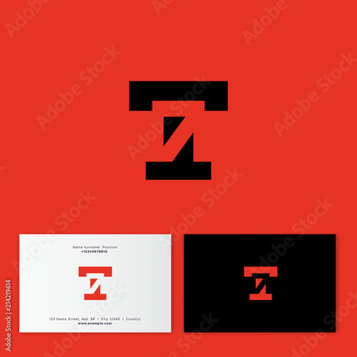 Fototapeta premium T and 7 number monogram. T letter and hidden numeric symbol 7. Digital logo. Flat style emblem. Identity, business card. Inverted version.