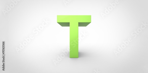 Obraz premium T 3D font big neon green letter standing on white gray background