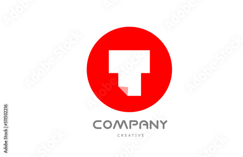 Fototapeta premium T geometric alphabet letter logo icon design with folded corner and red circle
