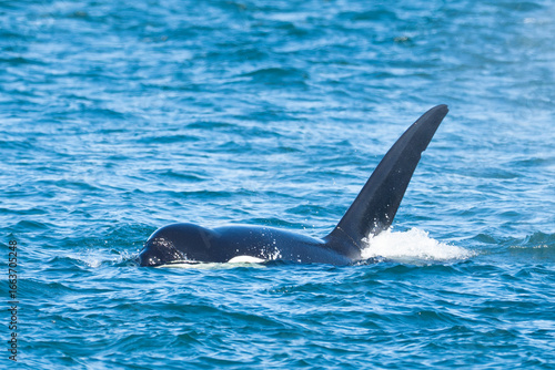 Fototapeta premium T-Pod Orcas Hunt as Cruise Ship Passes in Puget Sound