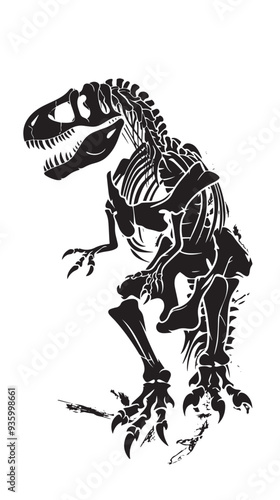 © NabilBin, Fototapeta premium T rex dinosaur skeleton negative space silhouette vector illustration