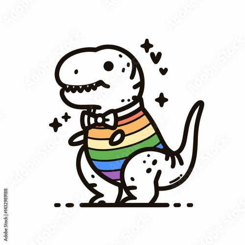 © Lovicora, Fototapeta premium T rex wear pride lgbtq costume. Funny Animal Vector Clip art. Dino dons festive attire rainbow equality gala clothing for Jurassic reptile.