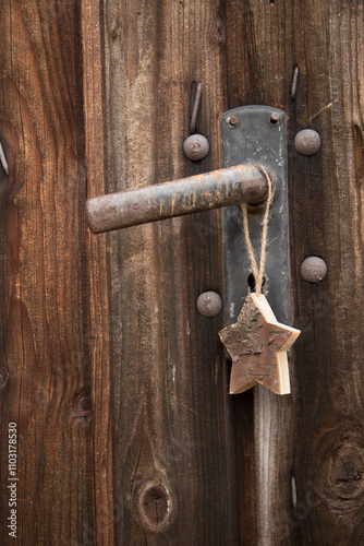 © Ingairis, Fototapeta premium Türgriff mit Holzstern