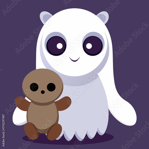 Fototapeta premium T-shirt Ghost With Big Round Eyes Holding A Teddy Bear Vector Cartoon