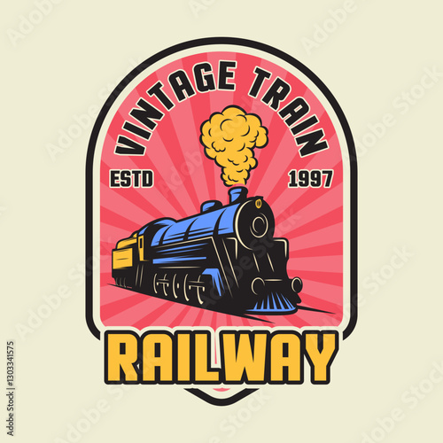 © Hubbub, Naklejka premium T-shirt vintage train vector design and emblem logo