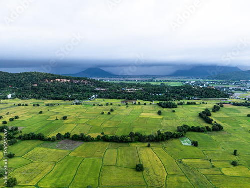 Fototapeta premium Ta Pa rice field scenery taken from above is so beautiful.