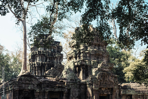 Naklejka premium Ta Prohm temple. Ancient Khmer architecture under the giant roots of a tree at Angkor Wat complex, Siem Reap, Cambodia