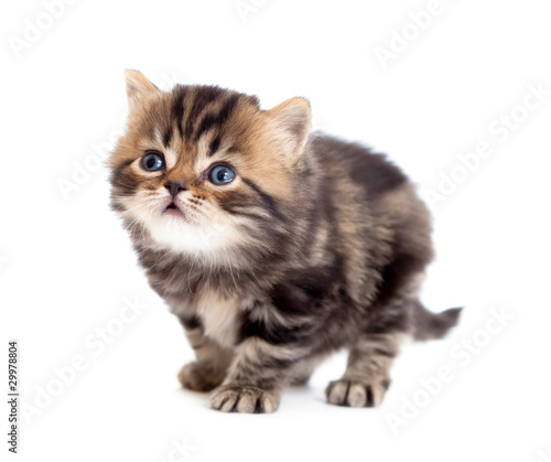 © Andrey Kuzmin, Obraz premium tabby british little kitten looking up isolated