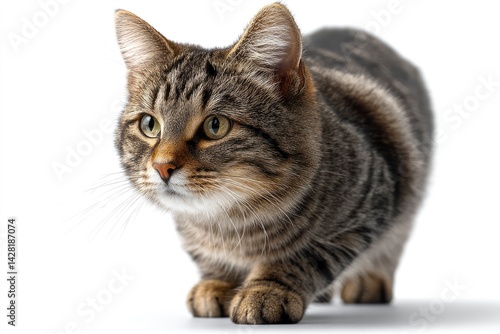 © Dzikrul Husnani, Obraz premium Tabby Cat Crouching on White Background