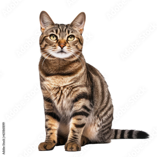 Fototapeta premium Tabby cat posing in a studio against a transparent backround.