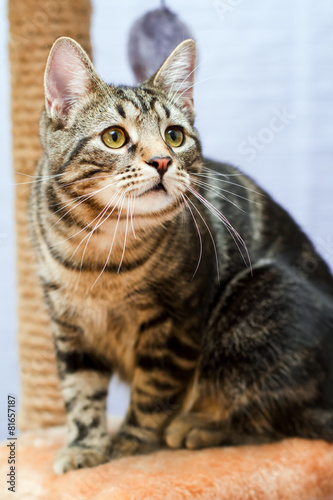 © moongerl, Fototapeta premium Tabby cat sits on a cat tower