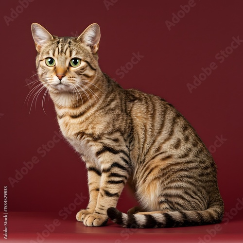 Obraz premium Tabby Cat Sitting on Red Background