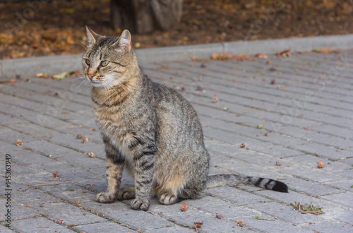 Naklejka premium tabby cat sitting on the street