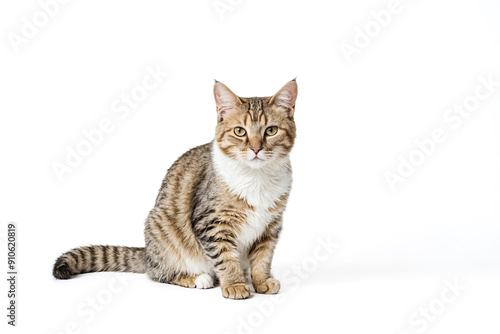 © Rysak, Obraz premium Tabby Cat Sitting on White Background