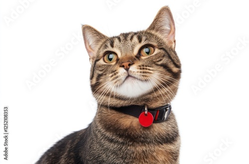 © AGIL, Fototapeta premium Tabby Cat Wearing A Collar With A Red Tag