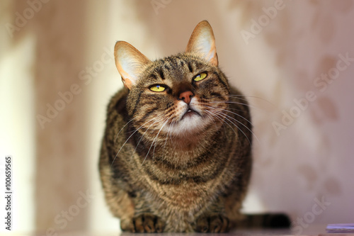Obraz premium tabby cat with bright yellow eyes