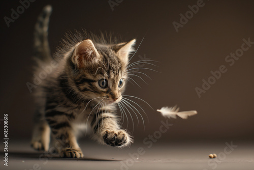 © DigitalArtistryWizrd, Obraz premium Tabby kitten playing with a feather