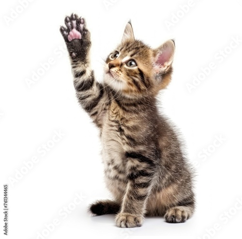 Fototapeta premium Tabby Kitten's Adorable Stand-up Moment Captured - Generative AI