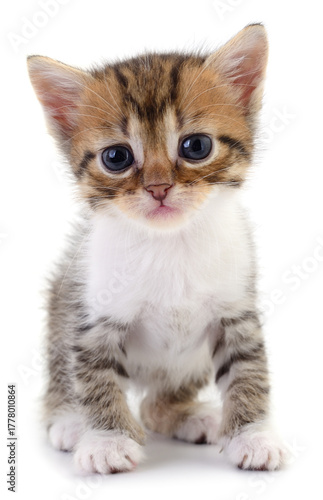 © olhastock, Obraz premium Tabby kitten sitting isolated on white background