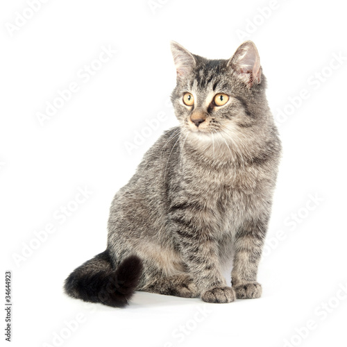 Obraz premium Tabby sitting sitting on white