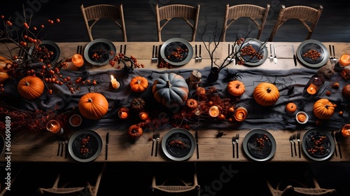 Obraz premium Table decorated with autumn pumpkins, party creative image.