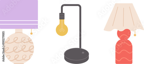 © Оля Палац, Obraz premium Table lamps isolated on a white background. Modern lamps for home. Vector illustration