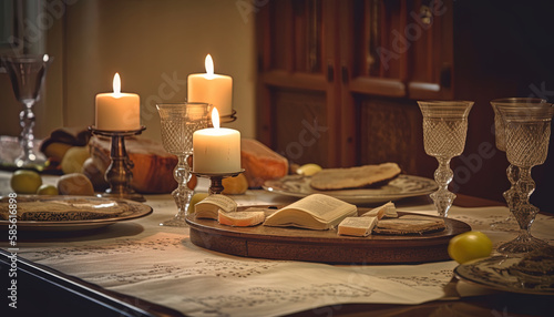 Obraz premium Table prepared with traditional food to celebrate Passover
