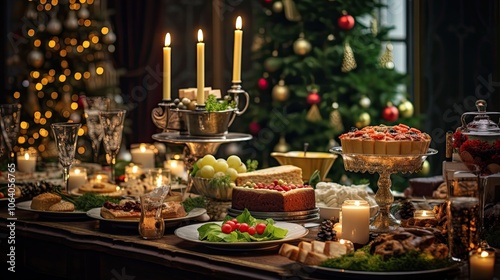 Fototapeta premium table served for Christmas dinner