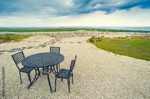 © andreiko, Fototapeta premium Table setting in tropical Outdoor restaurant at the beach. Cafe