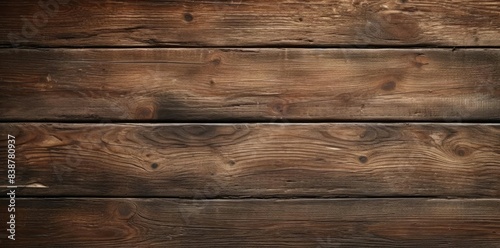 © Siasart Studio, Naklejka premium table textured wooden planks with a brown knot and a wooden wall in the background
