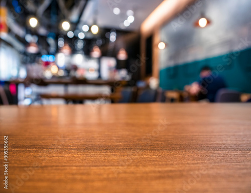 © VTT Studio, Obraz premium Table Top Cafe Coffee shop Interior restaurant with people sitting Blur background