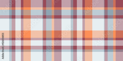 Fototapeta premium Tablecloth fabric texture pattern, no people plaid vector background. Colourful tartan check seamless textile in pastel snow and red colors.