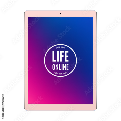 © Andriy Mertsalov, Fototapeta premium tablet rose gold color with colored screen isolated on white background. stock vector illustration eps10
