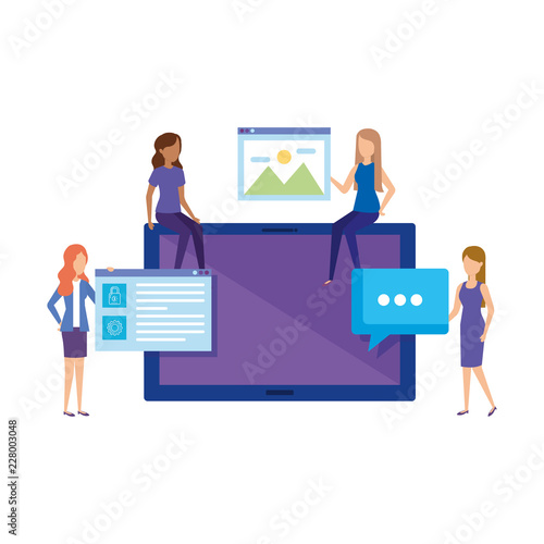 © Gstudio, Fototapeta premium tablet screen with mini people working