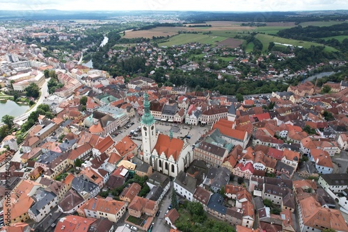 © Semi, Obraz premium Tabor old town historical city center aerial view with medieval structures Bohemia Czech republic