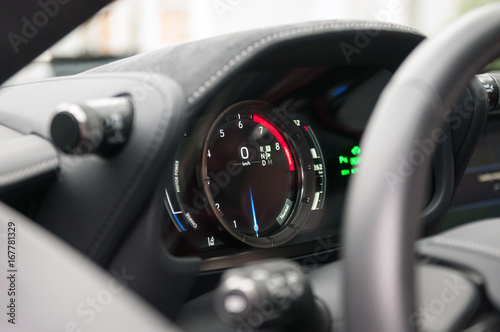 Obraz premium Tachometer and speedometer in the new sports car.