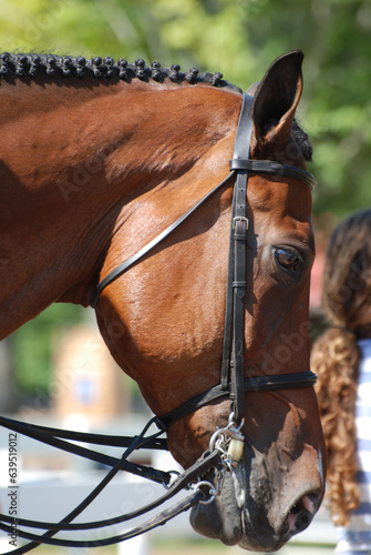 © dejavudesigns, Fototapeta premium Tacked Horse Under Saddle with Bridle and Braids