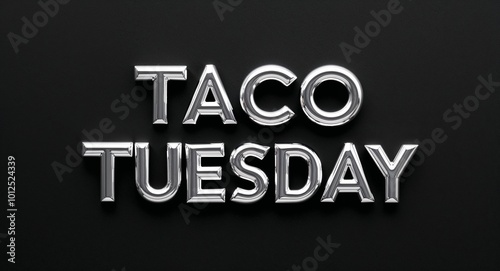 Fototapeta premium taco Tuesday silver shining shiny solid metallic lettering on plain black background
