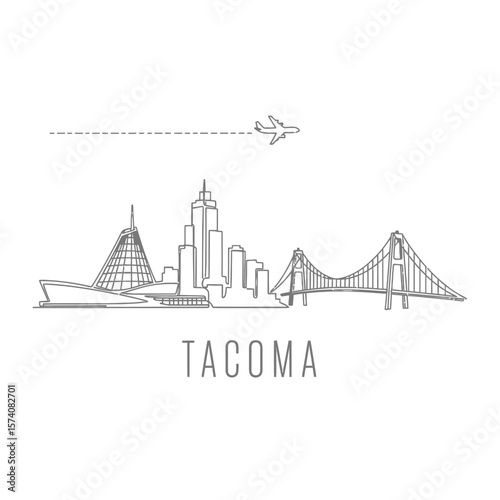 © godsfavoritearts, Obraz premium Tacoma skyline Washington state vector.