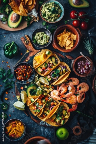 Fototapeta premium Tacos Platter with Shrimp and Avocado