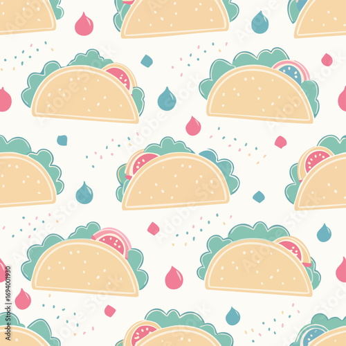 © Food and drink, Fototapeta premium Tacos soft pastel vector seamless design for endless tiling.