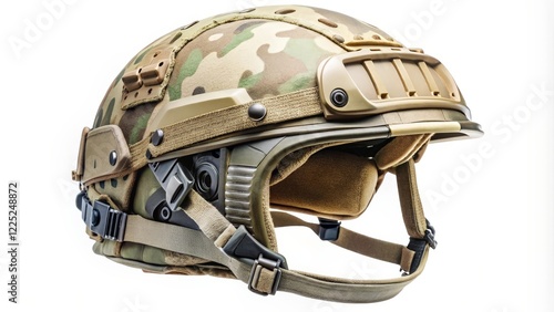 Naklejka premium Tactical Helmet, Camouflage, Head Protection Gear
