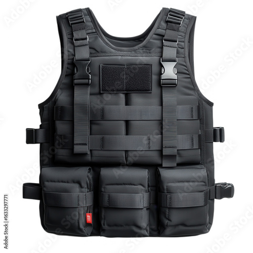 © rocky, Fototapeta premium Tactical vest with multiple pouches and molle system for military police or security personnel isolated on transparent background