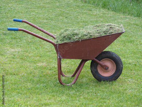 Obraz premium Taczka ze skoszoną trawą