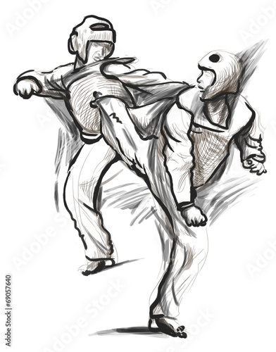 © kuco, Fototapeta premium Tae-Kwon Do. An full sized hand drawn illustration on white