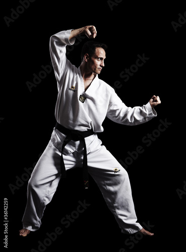 Fototapeta premium Taekwondo, Doppelfaust, vor schwarz