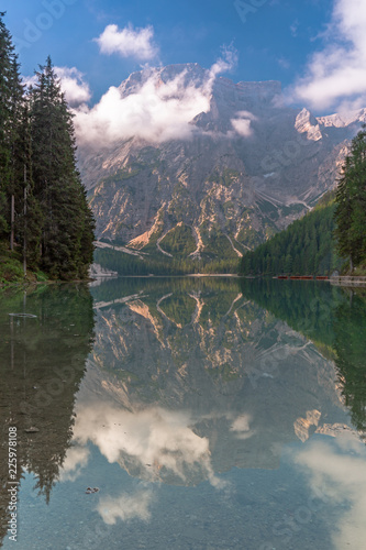 © nemo1963, Naklejka premium Tagesanbruch im Spätsommer am Pragser Wildsee, Südtirol
