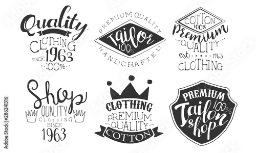 © topvectors, Fototapeta premium Tailor Shop Premium Retro Labels Set, Shop Quality Hand Drawn Badges Monochrome Vector Illustration