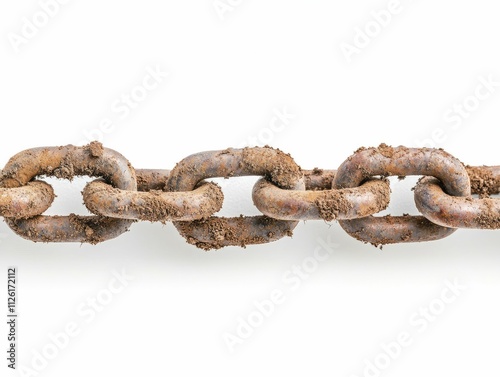 Obraz premium Tainted soil grains transform into heavy chains, bright white backdrop,...