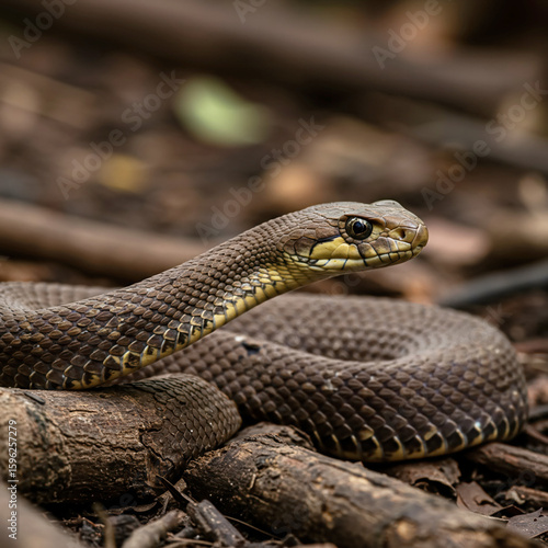 © Angellacelin, Fototapeta premium Taipan Masterpiece: Photorealistic Alert Snake in Natural Forest Setting, 8k.